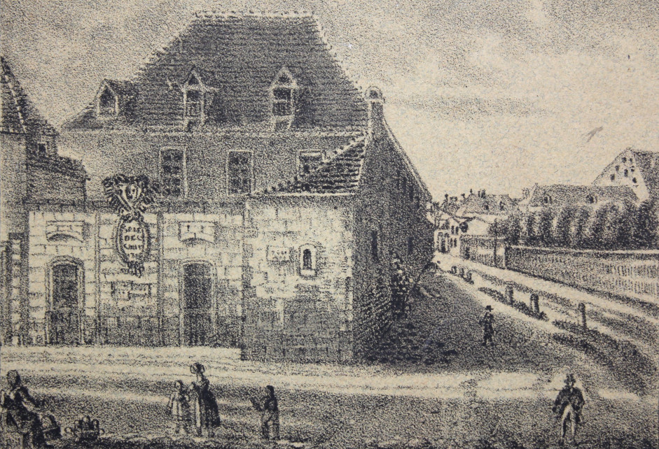 Ci-dessus, aspect de ce même grand portail, rue Buffon (gravure du 19e siècle, BM Dijon).