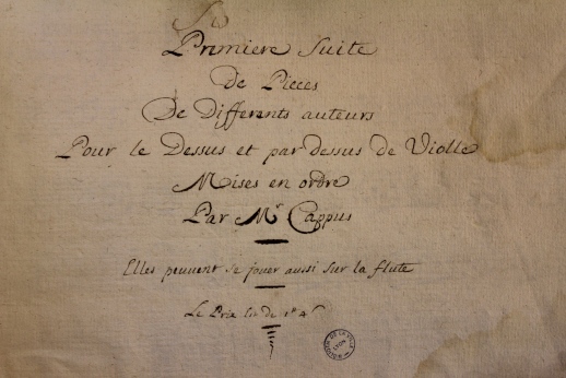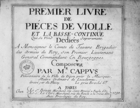 Recueil de suites de pièces de différents auteurs pour le dessus et le pardessus de violle, mises en ordre par Mr Cappus,